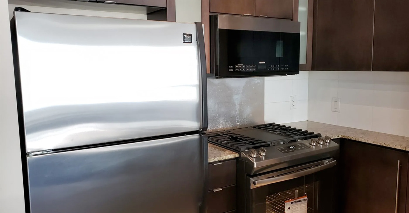 Unit has all stainless steel high end appliances, gas stove and large fridge. Hardwood floor throughout, and double sinks in the master en-suite. Bonus 2 balconies, in-suite laundry, amenity room and gym.