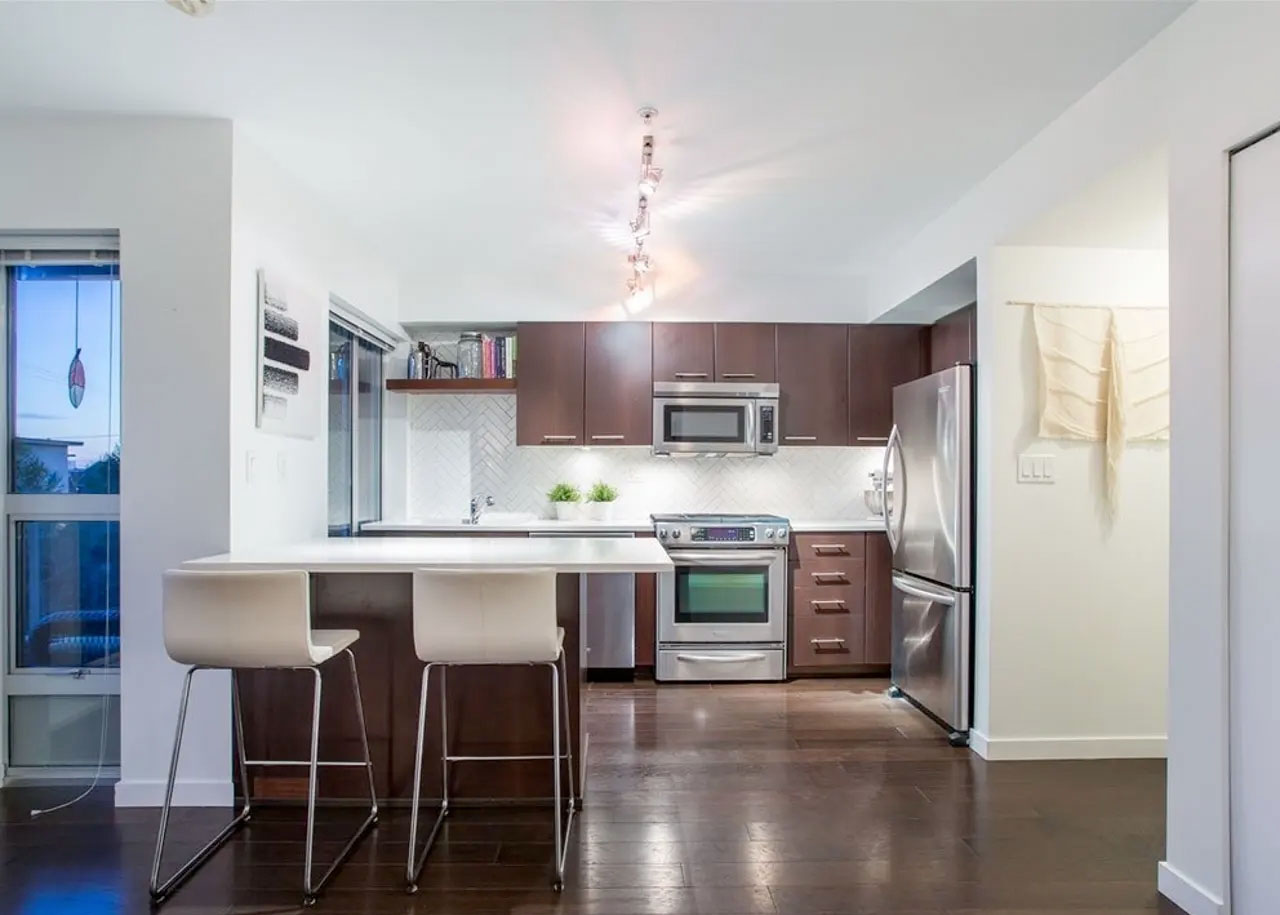 This rare find 2 level FURNISHED townhouse unit has great layout and offers high quality modern finishing, engineered hardwood flooring throughout and a cozy gas fireplace. The open concept kitchen features a natural gas range, solid stone counters and stainless steel appliances. The 2nd bedroom is currently converted to a home gym and can be removed base on the tenant's needs.