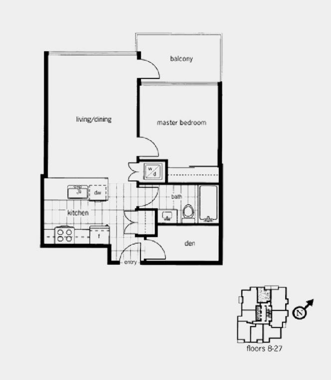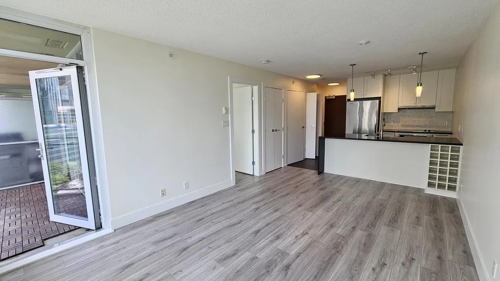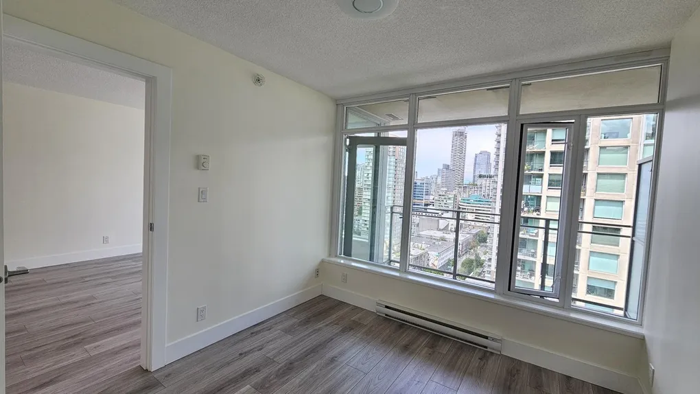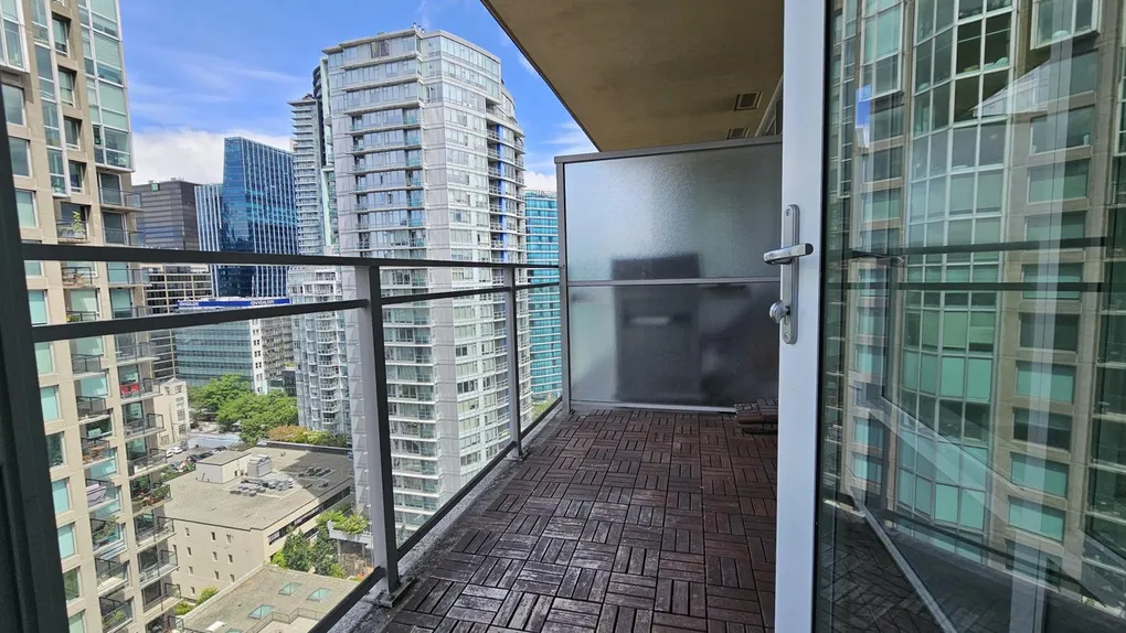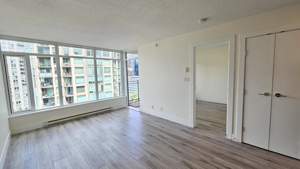 Furnished (can be unfurnished) with queen size bed, sofa, working station, coffee table, bar-stools, big flat screen TV in living room, a small TV in bedroom. BBQ on the balcony and partial views of water/city/. High end appliances, walk-in den as a customized closet for your clothes and shoes. Place is live-in ready and great for corporate employee relocation or a small family.