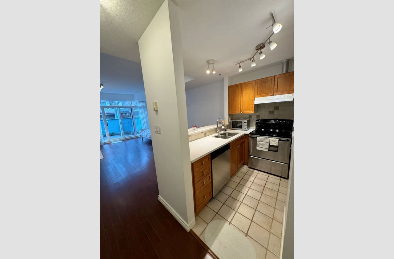 This rare studio unit is located on the ground level with a large private backyard, facing the quiet north back alley. The unit has a spacious floorplan, with hardwood floor, gas fireplace and stainless steel appliances and in-suite laundry.