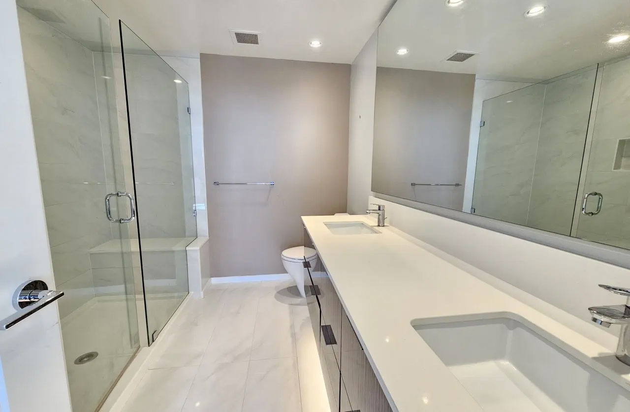This most desired northeast facing 2 bed and 2 bath home offers stunning water and city view from every single room. Designed for comfort with an open layout, large kitchen island, modern cabinetry, and sleek appliances on wood-style floors. The master suite features a walk-in closet, double sink and spa shower.