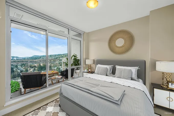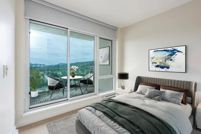This stunning west facing one bedroom unit has amazing mountain and water view. Functional layout with spacious living area and good size bedroom. Newly upgraded laminated wood floors, carpet and roller blinds. Floor to ceiling window provide abundance of natural light. Large balcony extending your living space to outdoors for summer entertainment. Gourmet kitchen with high-end appliances, gas cook-top and under-mount oven. Quartz counter with breakfast overhang.