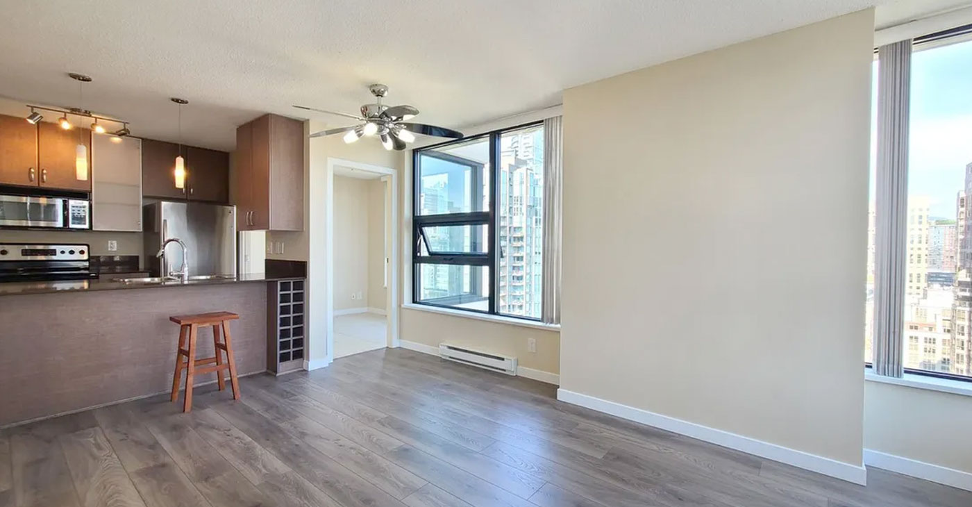 Unit just finished upgrading with hardwood flooring and new paint. Rent does not include BC Hydro (electricity) and your own cable tv/internet. Strata move in fee and elevator damage deposit also applied to all new tenants. Sorry no pets. 1 parking is included!