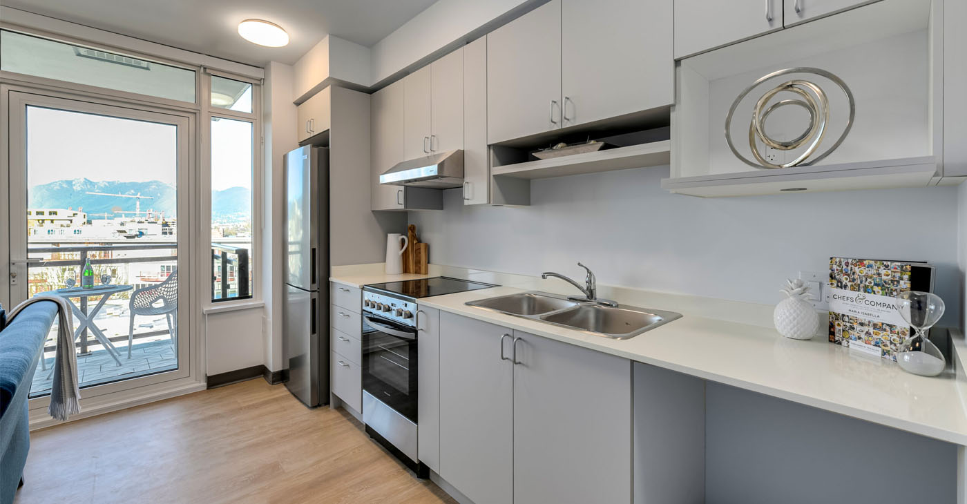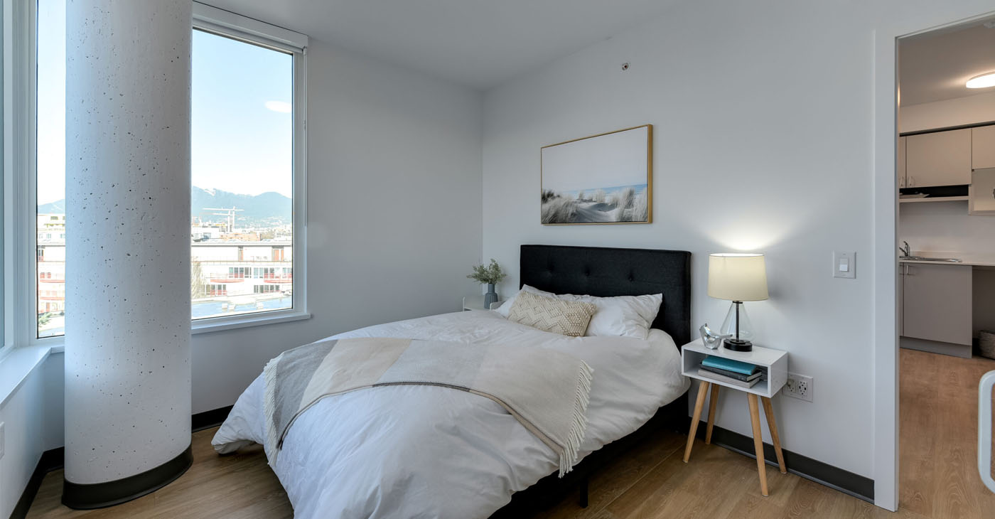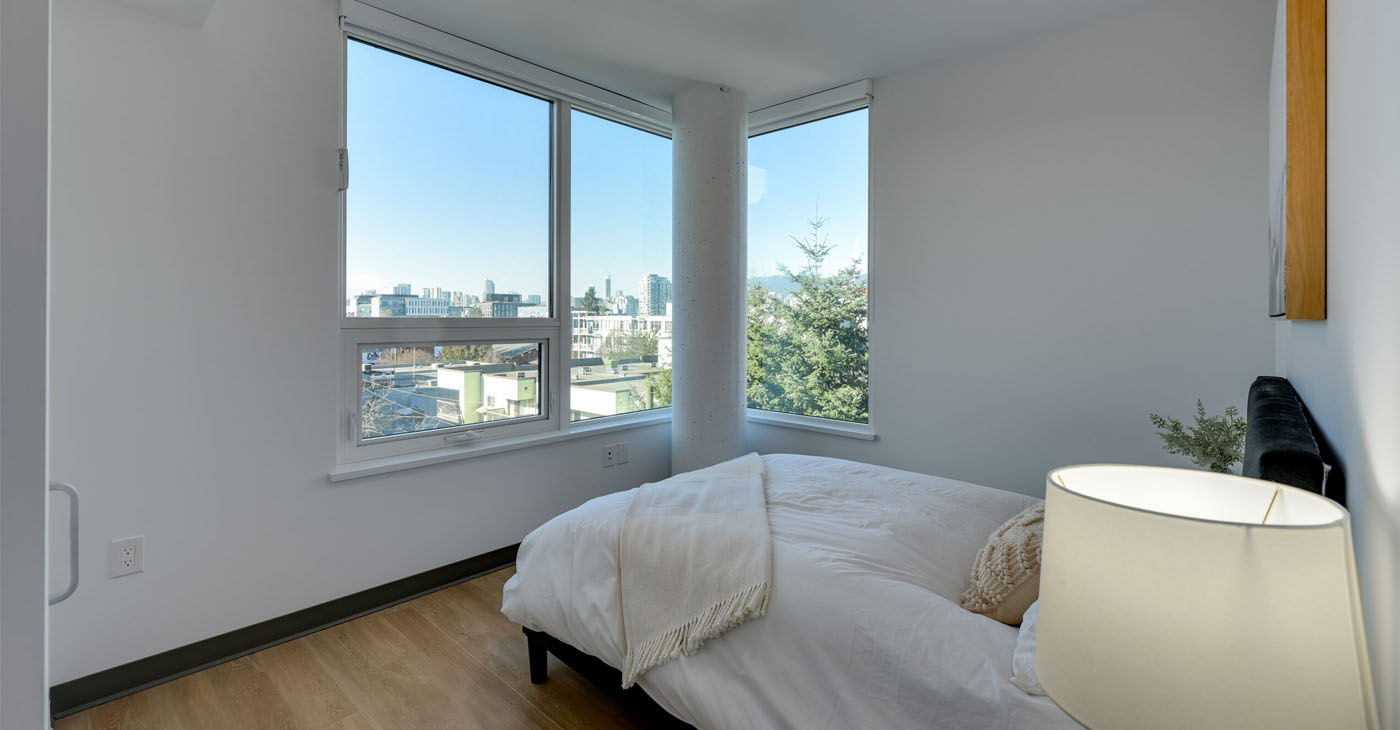 The building is pet-friendly, and is geared toward seniors and families seeking secure rental homes in Vancouver. Some units are rented at Low-End-of-Market rental rates. A rooftop amenity space provides spectacular panoramic views of the city and mountains, and a ground floor common space connects with the vibrant Mount Pleasant community.