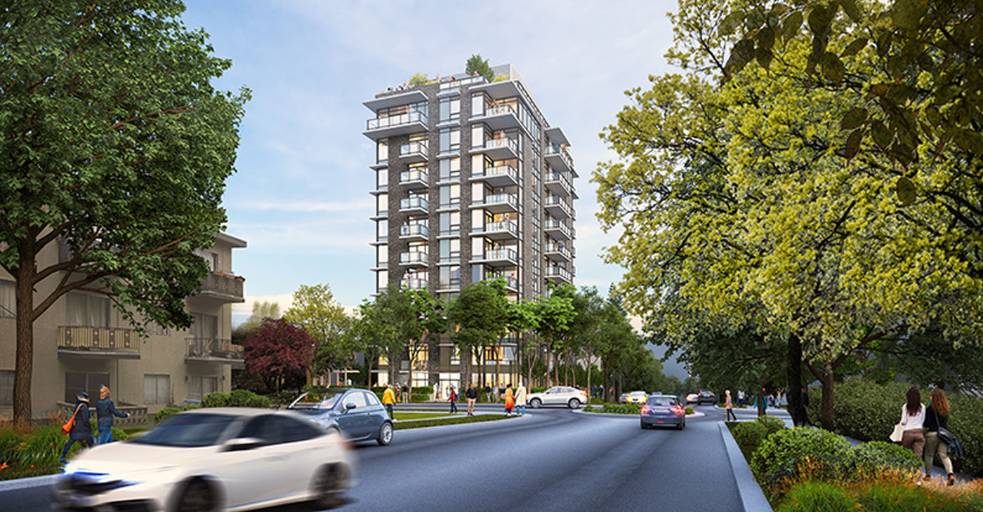 The Aster is a 12-storey, 82 unit concrete building with studio, one-, two-, and three-bedroom homes.